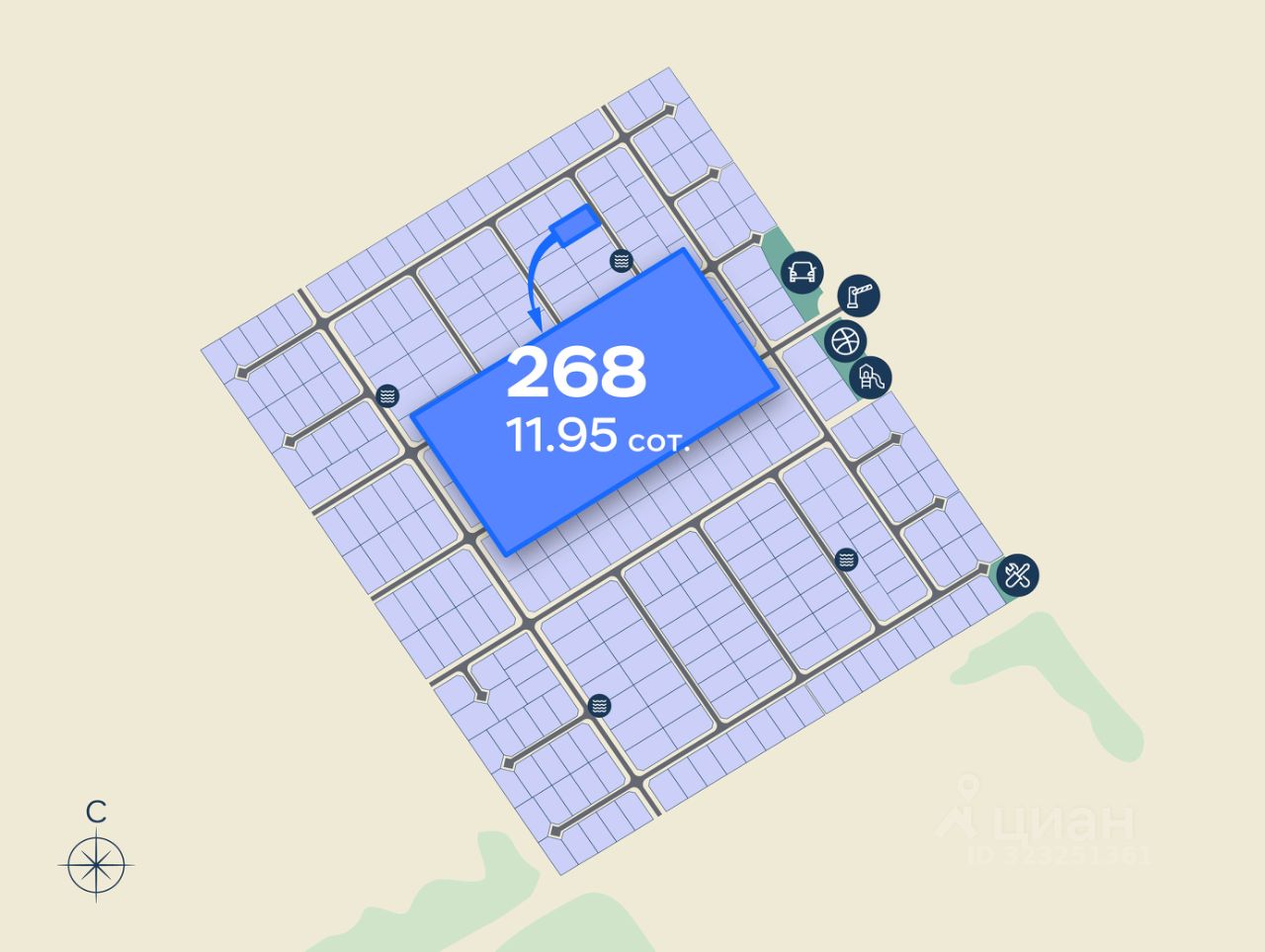ВОЗМОЖНА ОНЛАЙН-ПРЕЗЕНТАЦИЯ Участок 268. Кадастровый номер 1: 47:26:0108001:10411