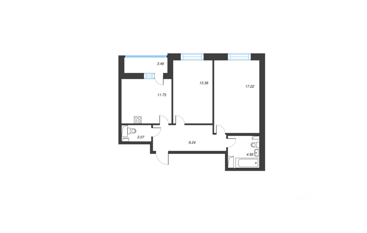 Квартира без ремонта, поэтому у вас есть возможность воплотить любые дизайнерские идеи и создать интерьер своей мечты. В квартире предусмотрены два отдельных санузла, что очень удобно для семьи. Планировка квартиры позволяет организовать пространство по вашему вкусу и предпочтениям.