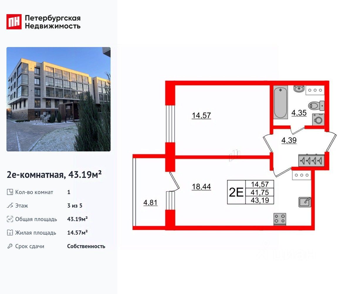 Продаются уютные 1-комнатные апартаменты в жилом комплексе ''Берег. Курортный'' в Курортном районе. До метро можно добраться на транспорте всего за 25 минут. Удобная, классическая, функциональная европланировка, большая кухня-гостиная 18.44 м², вместительная прихожая 4.39 м². Общая площадь апартаментов - 43.19 м², жилая 14.57 м², высота потолка 2.64 м. Квартира продается с отделкой ''Чистовая''. Что особенного в ЖК ''Берег. Курортный''? • Уникальное расположение в окружении заповедных зон, напротив парка Дубки, на 1 линии канала. • Свой выход к набережной и пляжу • Вход в апартаменты организован через Центральное лобби площадью 250 метров с каминной комнатой. • На первых этажах расположены квартиры с личными террасами • Закрытая забором территория комплекса