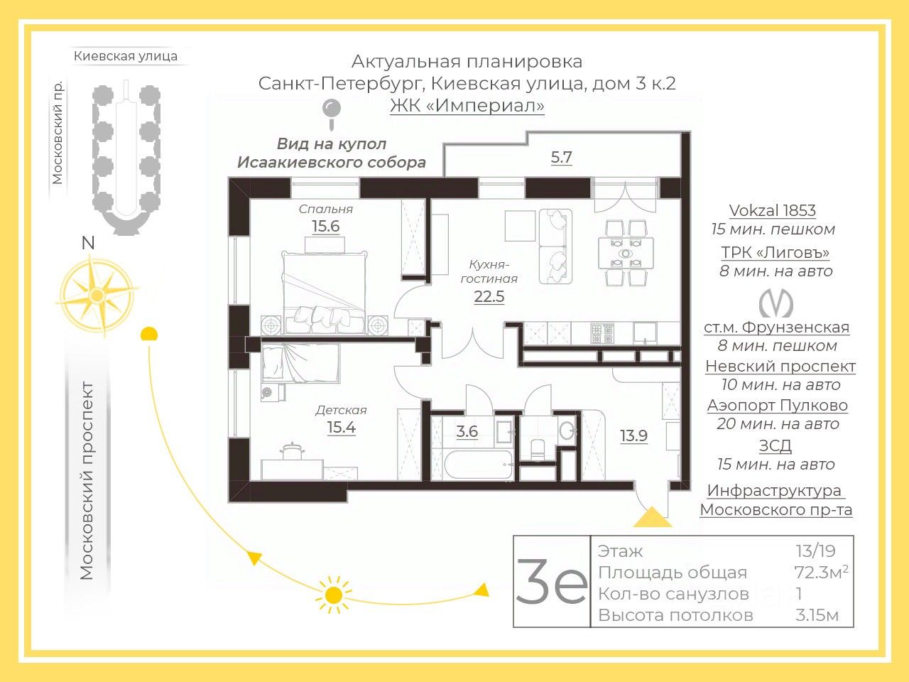 Арт. 123501968 Видовая квартира в ЖК ''Империал''. Пространство для жизни с видом на Исаакиевский собор