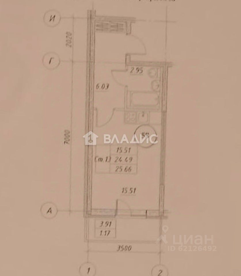 Квартира расположена на 7 этаже 24-х этажного кирпично-монолитного дома, построенного в 2016 году. Общая площадь составляет 25,66 кв. м, из них жилая — 15.51 кв. м, кухня — 4 кв. м. + Лоджия 3,91 Высота потолков 2,7 м создаёт ощущение простора.