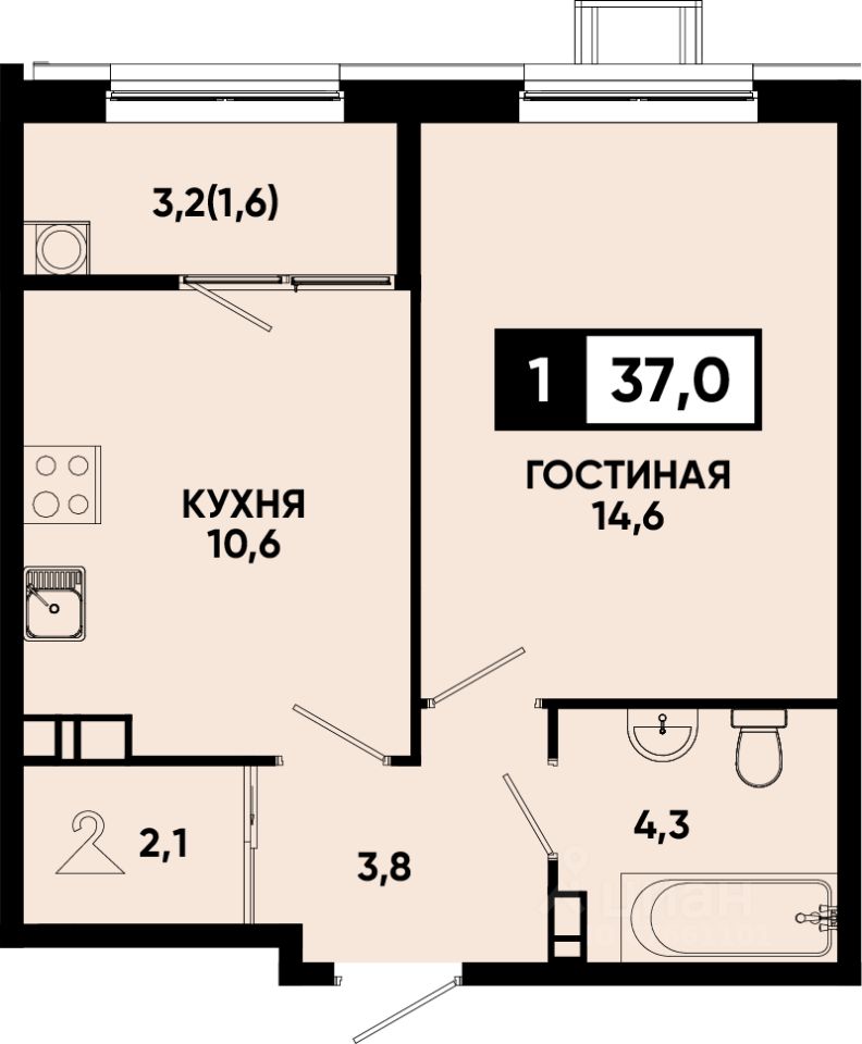 Общая площадь37 м2