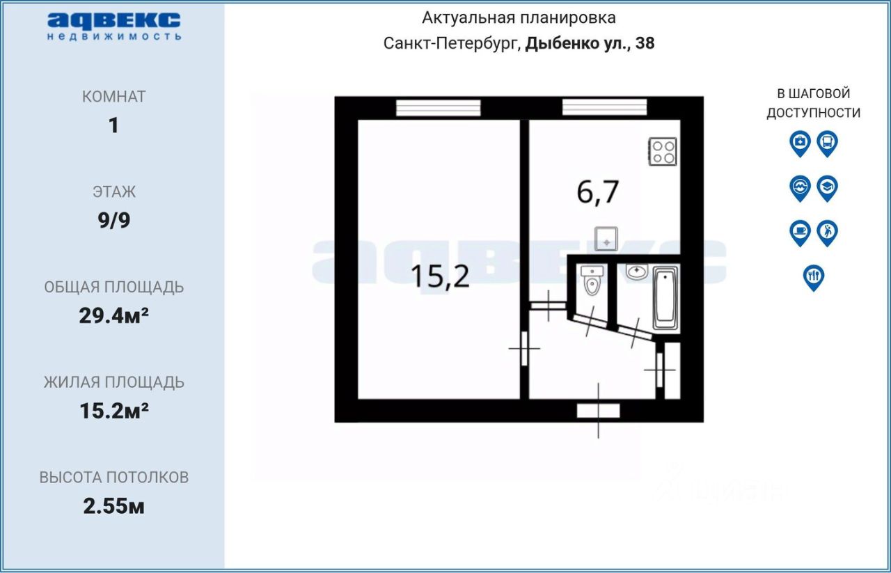 продам 1-к, Дыбенко, 385 600 000 ₽
