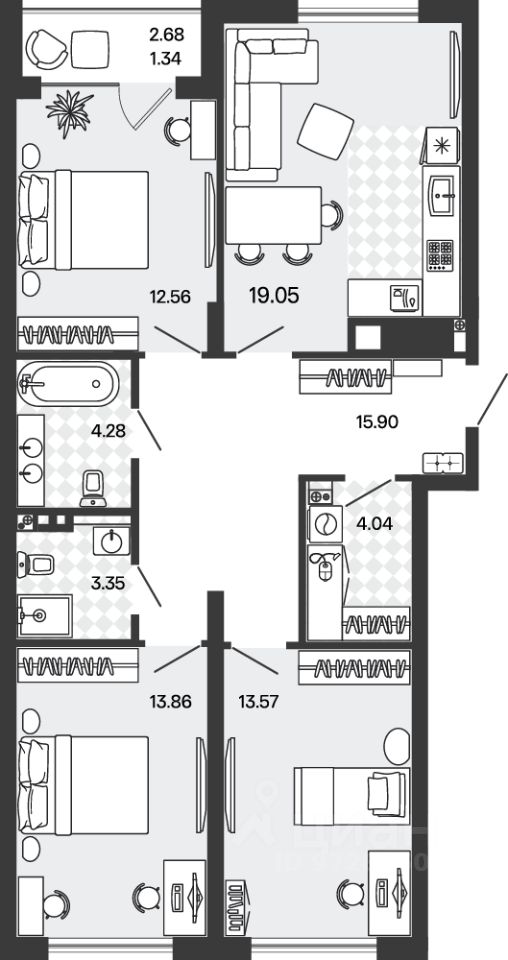 Общая площадь87,95 м2