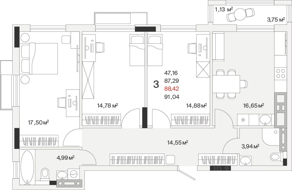 продам 3-к, Первая, 1 корп. 212 154 350 ₽
