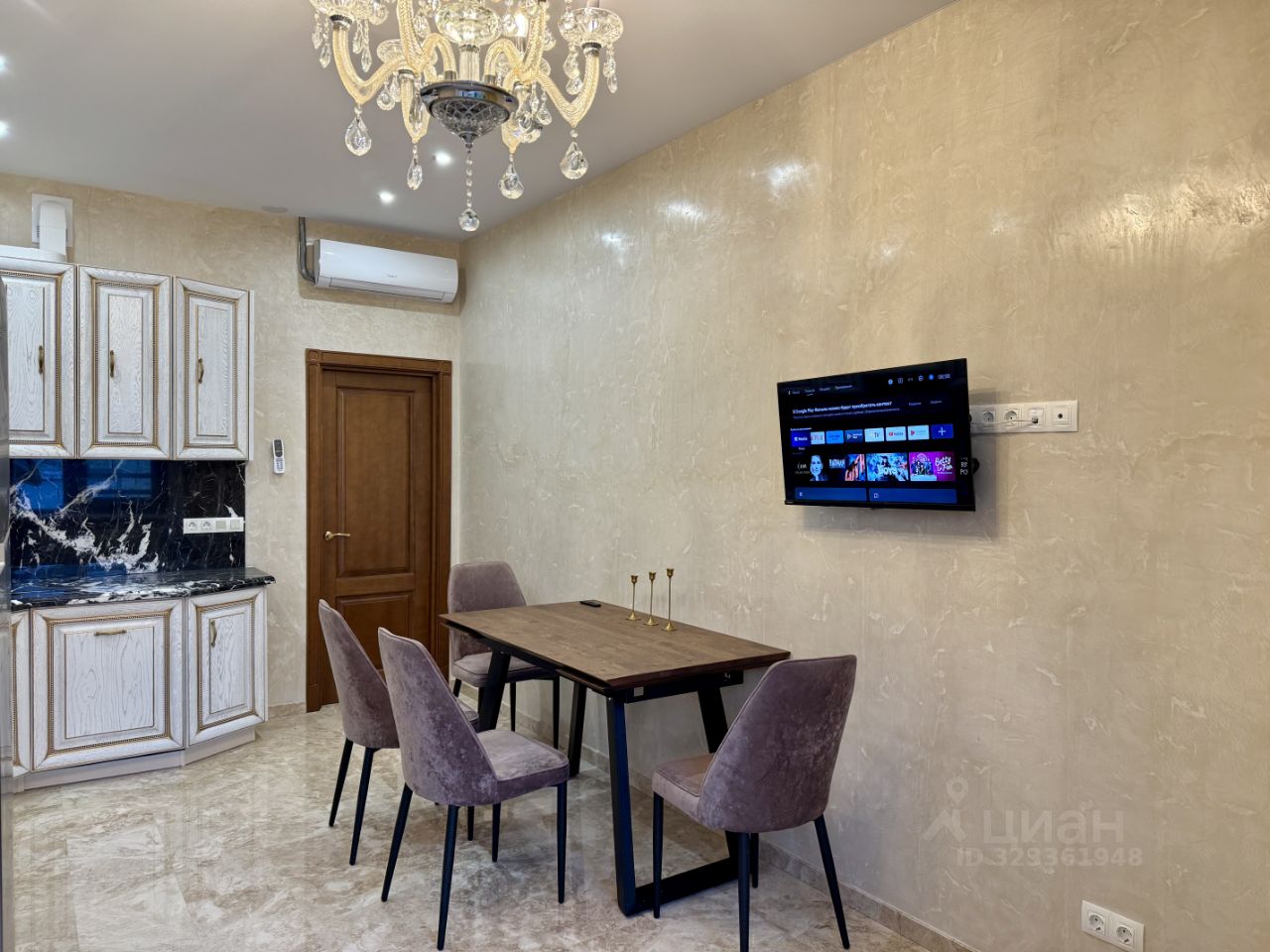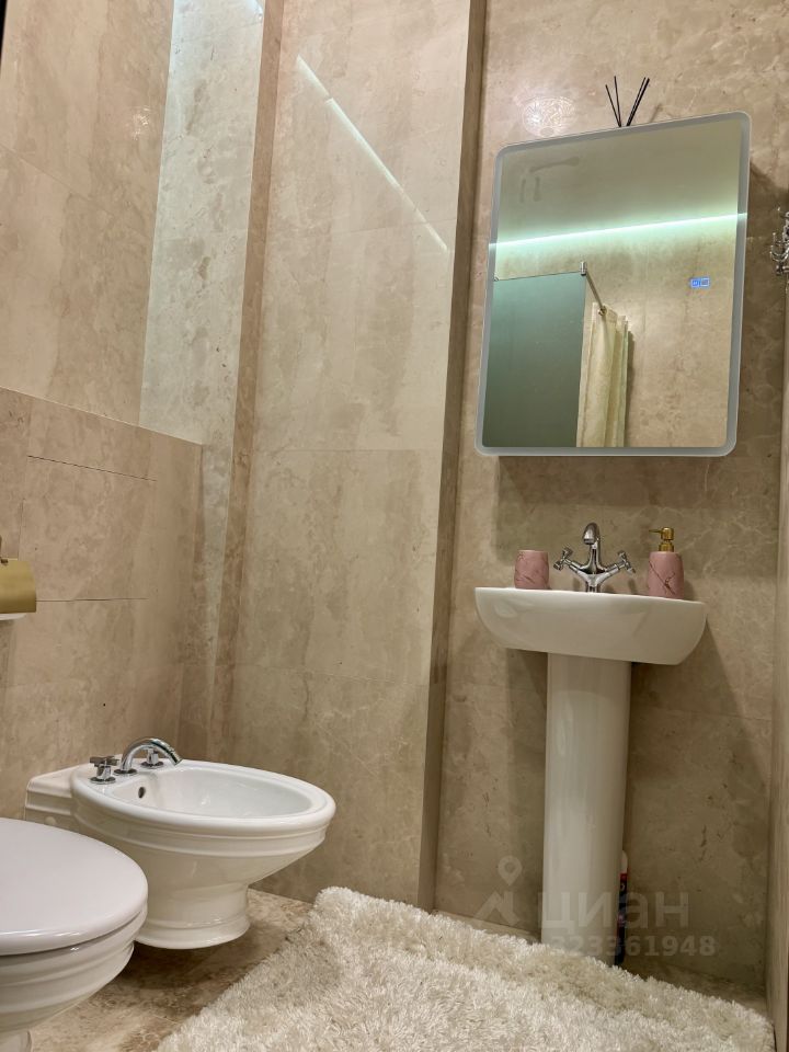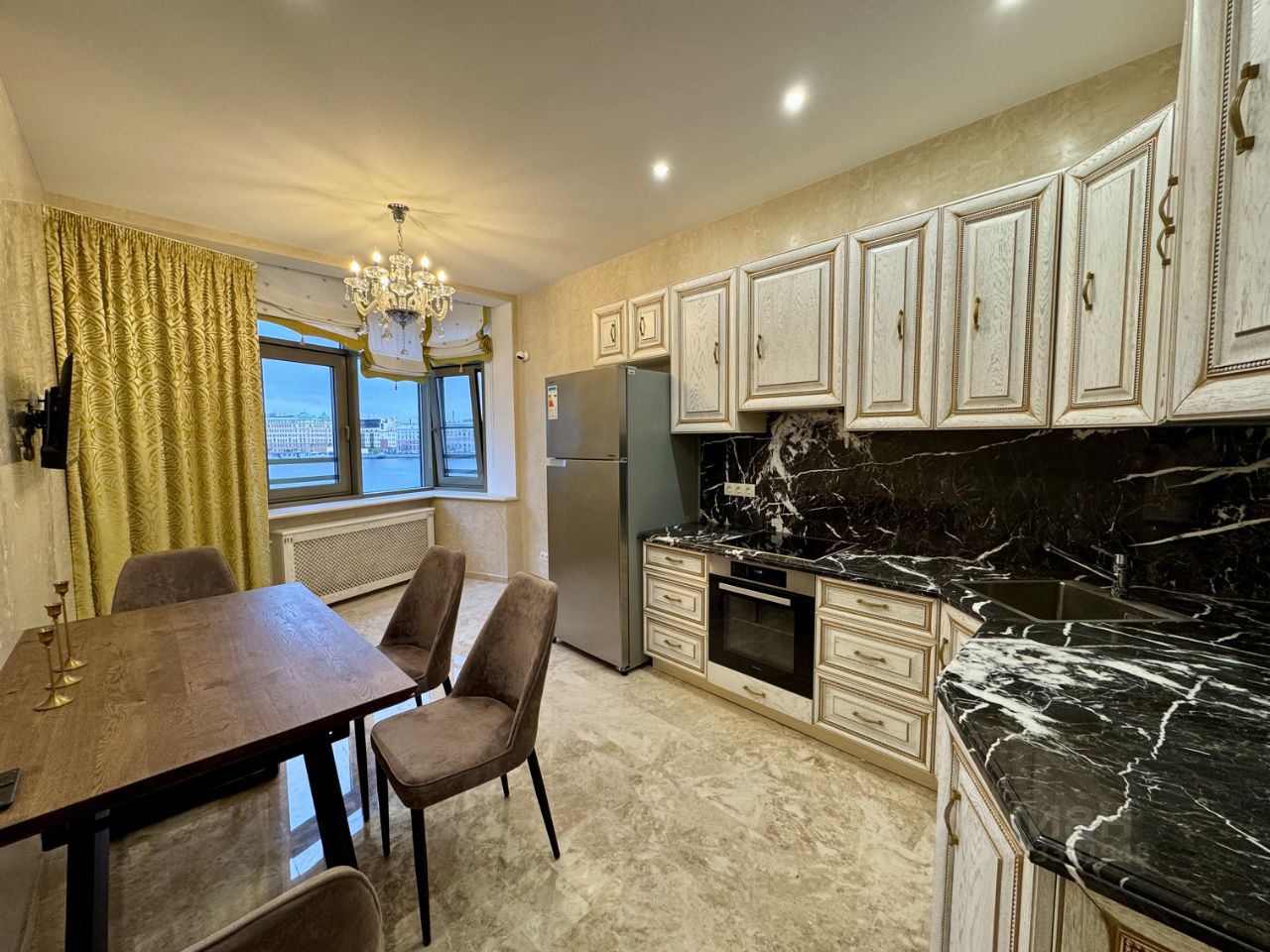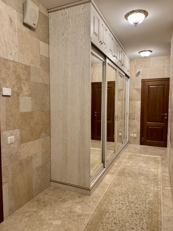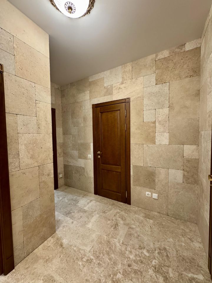 - Полностью новые коммуникации. Квартира обустраивалась с бетонного основания. - Отделка камнем Травертин (Турция) - Мебель произведённая на заказ на производстве ''Лаганаки''. - Полы в спальне из натурального дерева (массив). - Сантехника ''Villeroy & Boch'' - Техника Miele