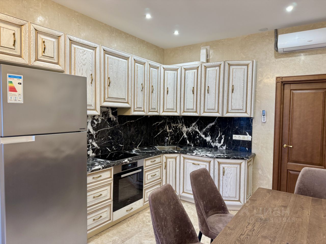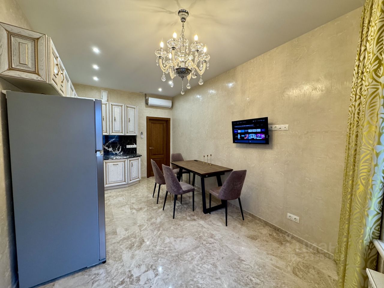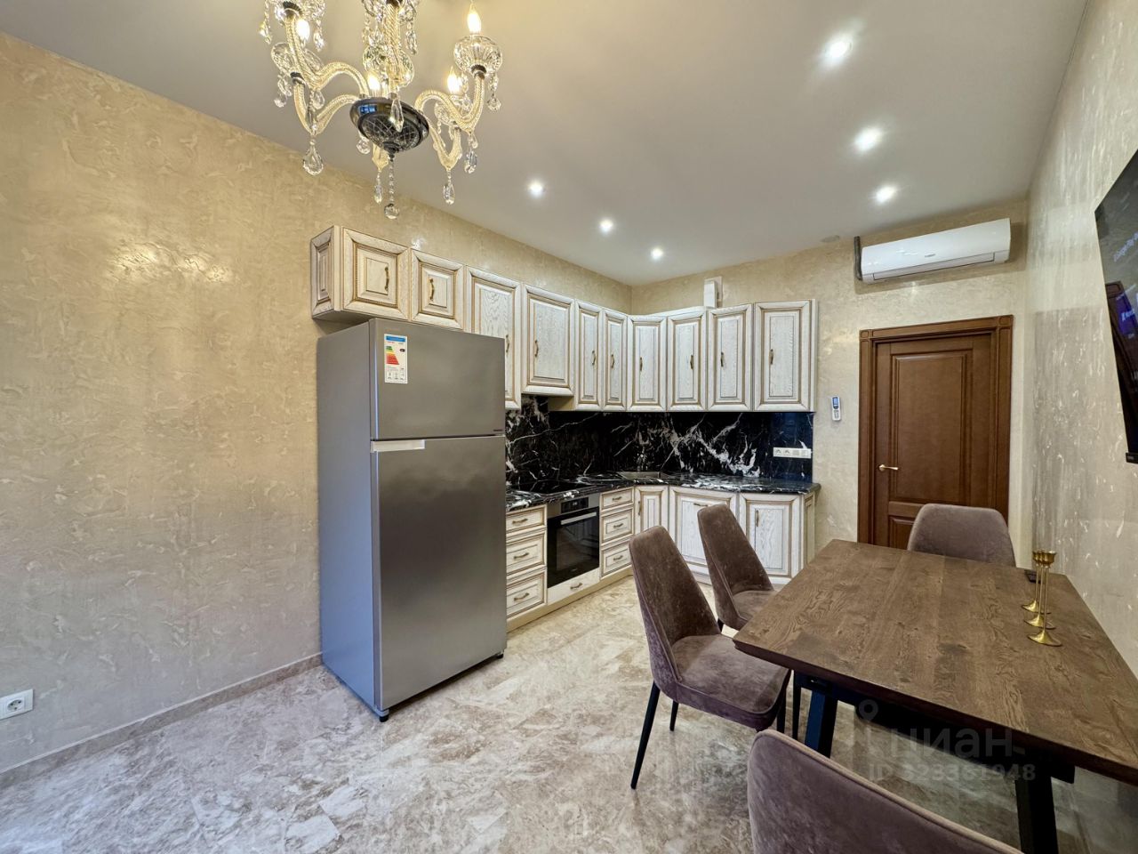 - Полностью новые коммуникации. Квартира обустраивалась с бетонного основания. - Отделка камнем Травертин (Турция) - Мебель произведённая на заказ на производстве ''Лаганаки''. - Полы в спальне из натурального дерева (массив). - Сантехника ''Villeroy & Boch'' - Техника Miele
