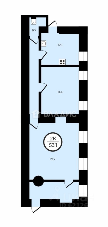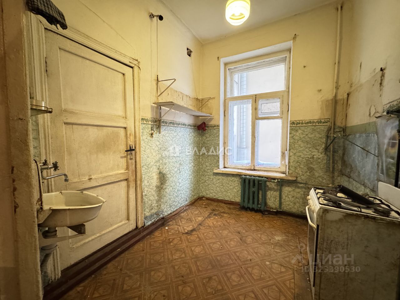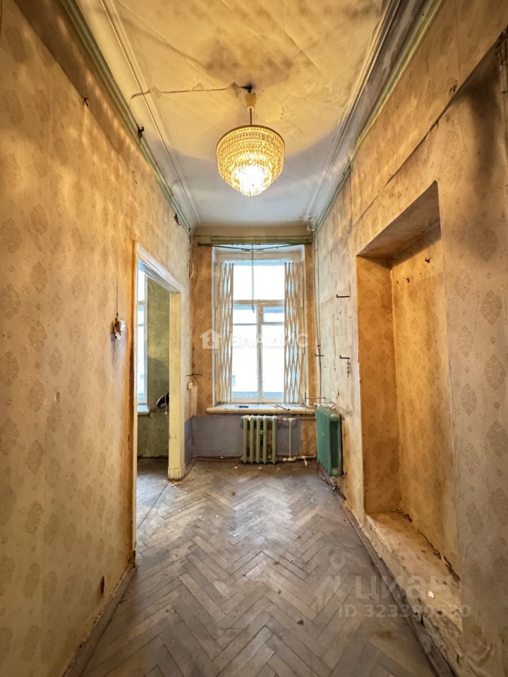 Описание объекта: Квартира расположена по адресу: Бронницкая улица, 18. Это кирпичная четырёхэтажка 1878 года постройки с центральным отоплением. Квартира находится на втором этаже и имеет общую площадь 53,1 кв. м, из которых 31,1 кв. м — жилая площадь. Высота потолков — 3,2 метра. В квартире есть действующий камин Квартира требует ремонта.