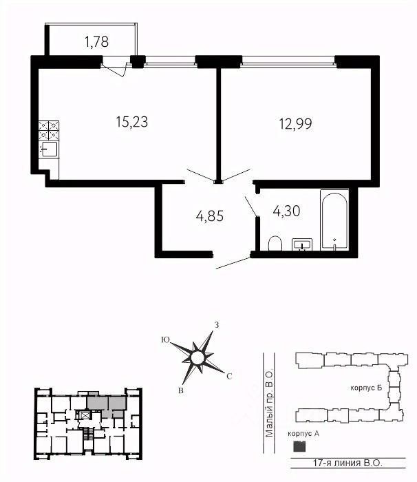 продам 1-к, 1-й (Горелово) проезд, 6б17 061 400 ₽
