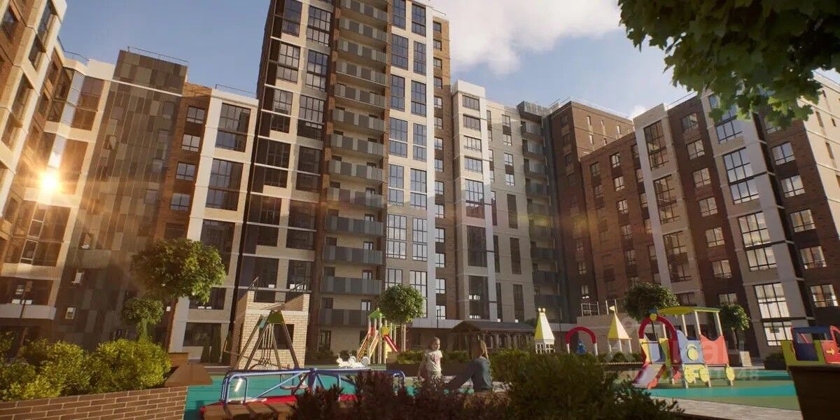 Площадь придомовой территории будет оформлена зелеными насаждениями, создавая приватное пространство для отдыха, детских игр и семейного досуга. Во дворе также будут пространства для занятий спортом и воркаутом. Парковка будет предусмотрена на подземном уровне с двухуровневым паркингом для жителей и гостевыми машиноместами.