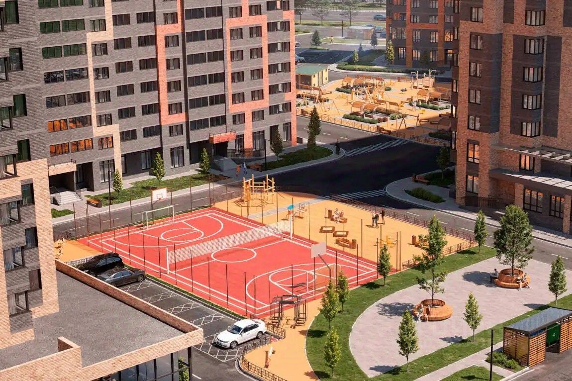 Территория комплекса закрыта и благоустроена, здесь организованы пространства для жителей всех возрастов. Аллеи для прогулок, спортивные и детские площадки. Организован безопасный двор без машин, установлено видеонаблюдение и предусмотрен консьерж-сервис. На 1 этаже предусмотрены коммерческие помещения, на втором этаже помещения для офисов.