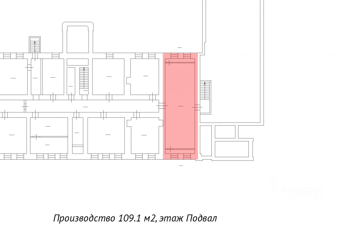 помещение площадью 109,1 кв. м. Расположение: ул. Комсомола, дом 1-3. Высота потолка: 1,5 - 2,2 м, линолеум на полу. Оснащение: выделенная электроэнергия, освещение, отопление. Проход на территорию осуществляется по электронным пропускам. Охрана 24 часа.