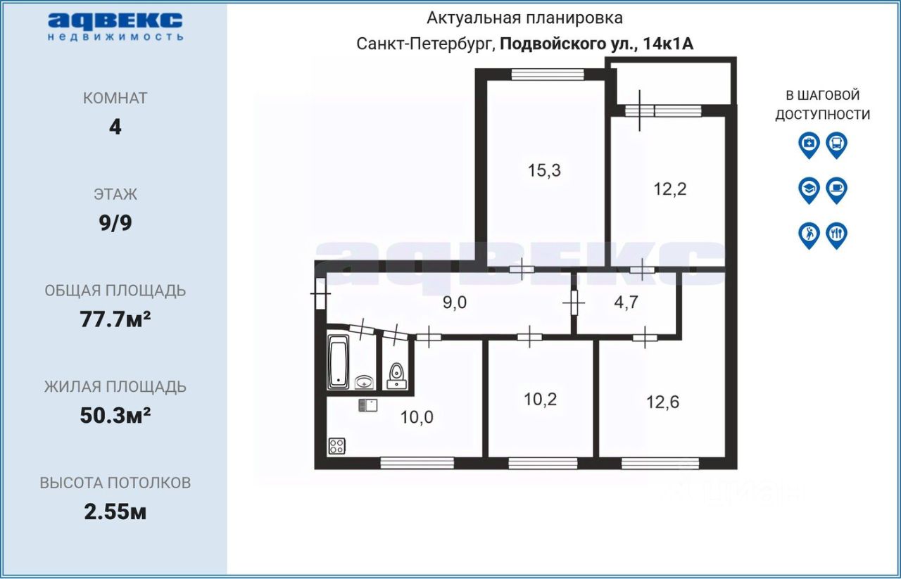 продам 4-к, Подвойского, 14 корп. 112 495 000 ₽