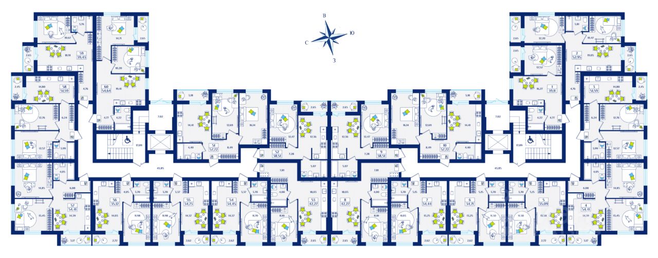 -Защитные ниши под кондиционеры на фасаде для каждой квартиры.