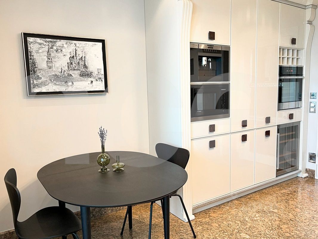 Великолепная квартира в жилом комплексе ''Доминион'' в Раменках. Общая площадь 165,1 кв. м, расположена на 6-м этаже 2-го корпуса (лучшего в ЖК). Выполнен высококачественный ремонт с использованием дорогостоящих материалов. Функциональная планировка: прихожая, кухня, гостиная, кабинет (либо еще 1 спальня), 3 спальни, 2 гардеробные, 3 санузла, 3 лоджии, постирочная. Предусмотрено много мест для хранения вещей. Квартира укомплектована мебелью и комплектующими ведущих мировых производителей Minotti, Provasi, Mantellassi, Pataviumart. Кухня Arca, бытовая техника Kuppersbush, Miele. Установлено телевизионное оборудование Loewe. Индивидуальная система кондиционирования и вентиляции Daikin, встроенный пылесос.