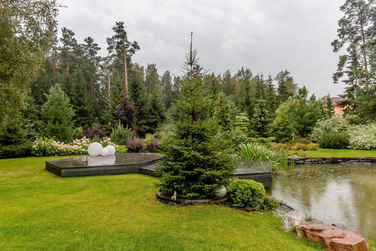 Участок граничит с лесом с двух сторон. Ландшафтный дизайн с террасами, собственный пруд с рыбами, более 30 видов растений, архитектурная подсветка и автоматический полив. Пространство спроектировано с учётом климата, почвы и архитектуры дома.