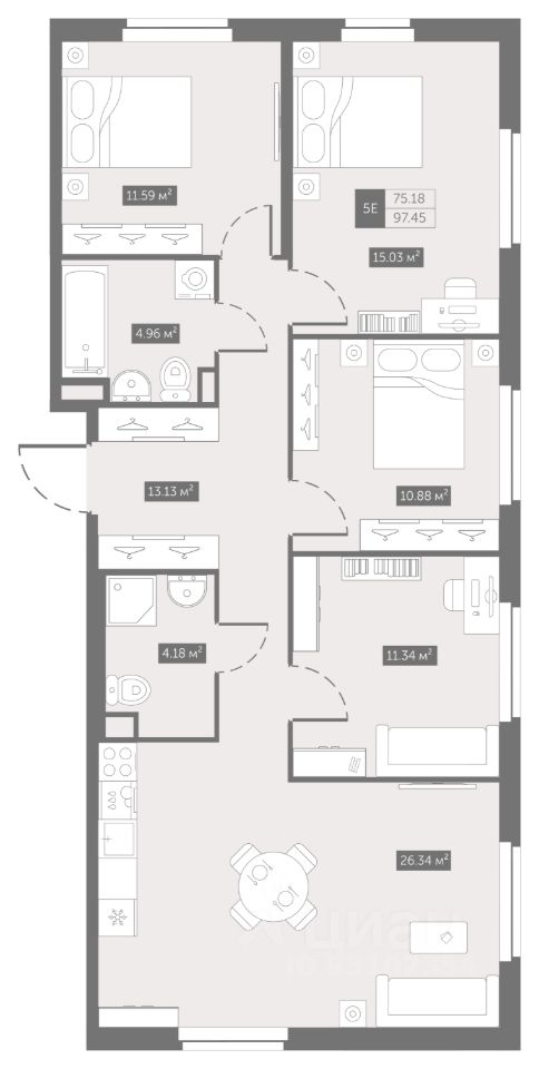 продам 4-к, Архивная, 3 корп. 117 582 416 ₽