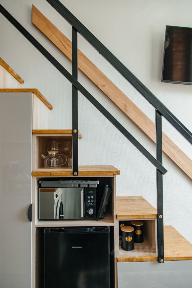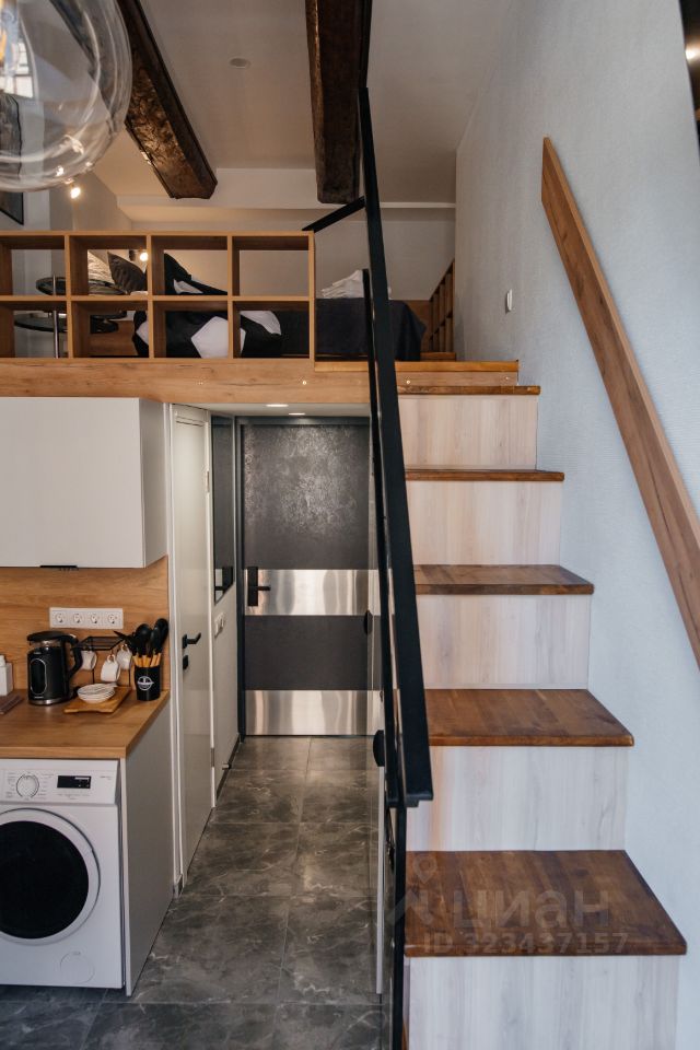 Компактная уютная двухуровневая Студия с кухней и санузлом. Студия укомплектована всем необходимым для Вашего комфортного пребывания и удаленной работы из дома. Уютный второй уровень со спальной зоной для двоих, обеденная зона, мини-кухня.