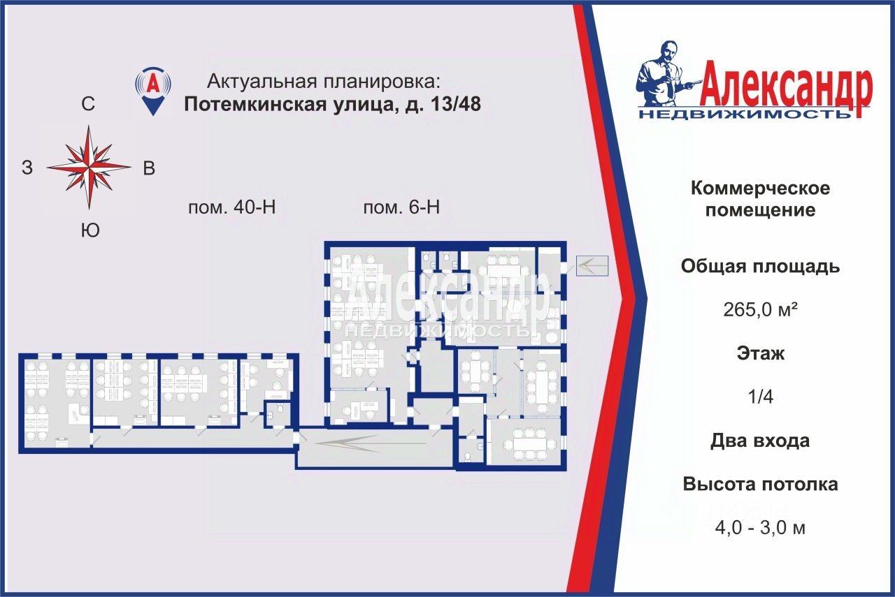 - Kлючевые пpeимущеcтвa: • Локация : Напротив в 20 метрах - Таврический сад, Таврический дворец, Ленинград-Центр, Оранжерея, рядом исторические дворцы и посольства разных стран. В 5 минутах -Парадный квартал, Невская Ратуша и комплекс зданий Правительств Санкт-Петербурга и Ленинградской области. • Ликвидность: Отдeльный вход с Потемкинской ул., свежий дизайнерский ремонт, продуманная планировка и свободное назначение делают помещение привлекательным для широкого круга арендаторов на долгие годы развития бизнеса. • Гибкие условия: Мы предлагаем гибкие варианты аренды (в том числе возможна аренда каждого помещения по отдельности), чтобы удовлетворить ваши цели. Потенциал для собственного проекта: Есть возможность организовать помещение ''под себя'' для размещения представительского офиса, шоу-рума, коворкинга или творческого пространства. - Детали объекта : • Помещение: Два помещения, возможность арендовать как целым лотом, так и по отдельности 173 + 92 м², 1 этаж, удобная планировка с возможностью трансформации, четыре отдельных входа, готовый свежий авторский дизайнерский ремонт, отделка с использованием качественных материалов и технологий. Объект оснащен мебелью, всеми необходимыми новыми системами жизнеобеспечения и безопасности, смонтированы системы видео-наблюдения с контроллерами и регистраторами, сетевое оборудование с оптическим вводом и малоточными сетями (свичами, контроллерами и конвекторами). Все новое без амортизации. • Технические характеристики: высота потолков 4 м, 6 витринных окон, электричество 15 кВт.