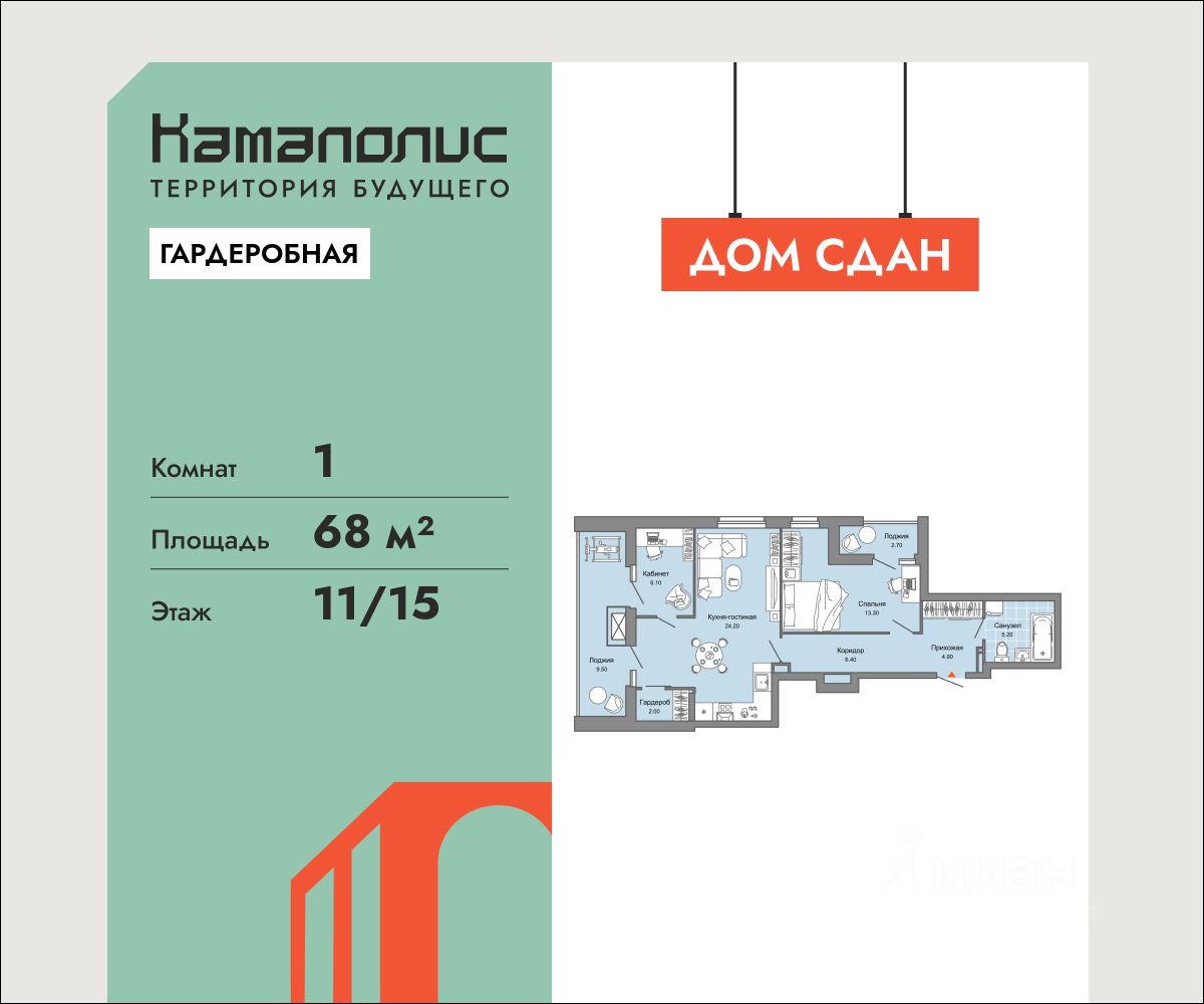 В новом жилом комплексе комфорт+ класса ''Камаполис'', расположенном на берегу реки Камы, продается 1-комнатная квартира площадью 68.00 кв. м. Квартира находится в 2 доме. Девелопер проекта - ''Железно''.