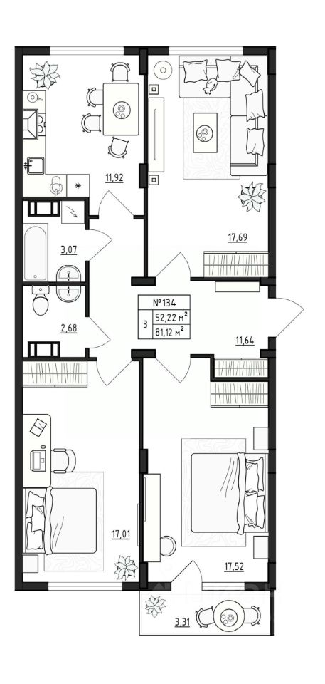 Продаётся 3-комнатная квартира в сданном доме (Сиреневая, 25к1 (Корпус 3)), срок сдачи: IV-кв. 2024, общей площадью 81.12 кв.м., на 4 этаже. В деревне Малое Верево есть все, что нужно для комфортной и спокойной жизни: рядом есть магазины, кафе, детские сады, школы и поликлиники. Ну, и конечно же, парковочные места для машин. А к моменту сдачи торгового центра - всё необходимое будет в шаговой доступности.