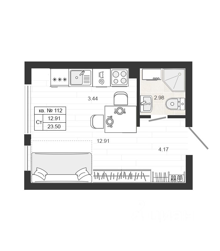 Продаётся студия в сданном доме (Кутышева, 9Ак2), срок сдачи: IV-кв. 2022, общей площадью 23.5 кв.м., на 3 этаже. В деревне Малое Верево есть все, что нужно для комфортной и спокойной жизни: рядом есть магазины, кафе, детские сады, школы и поликлиники. Ну, и конечно же, парковочные места для машин. А к моменту сдачи торгового центра - всё необходимое будет в шаговой доступности.