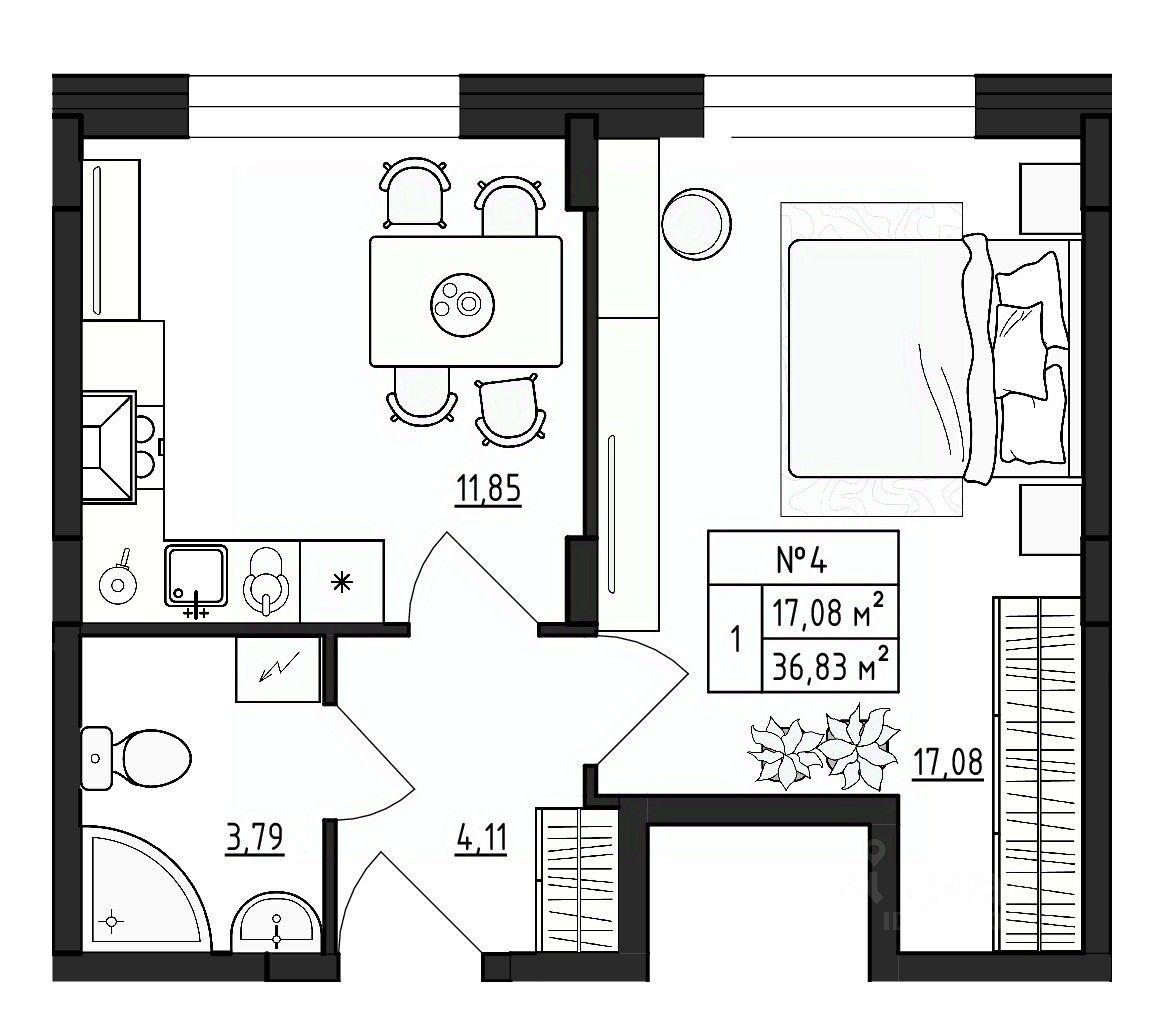 Общая площадь36,83 м2