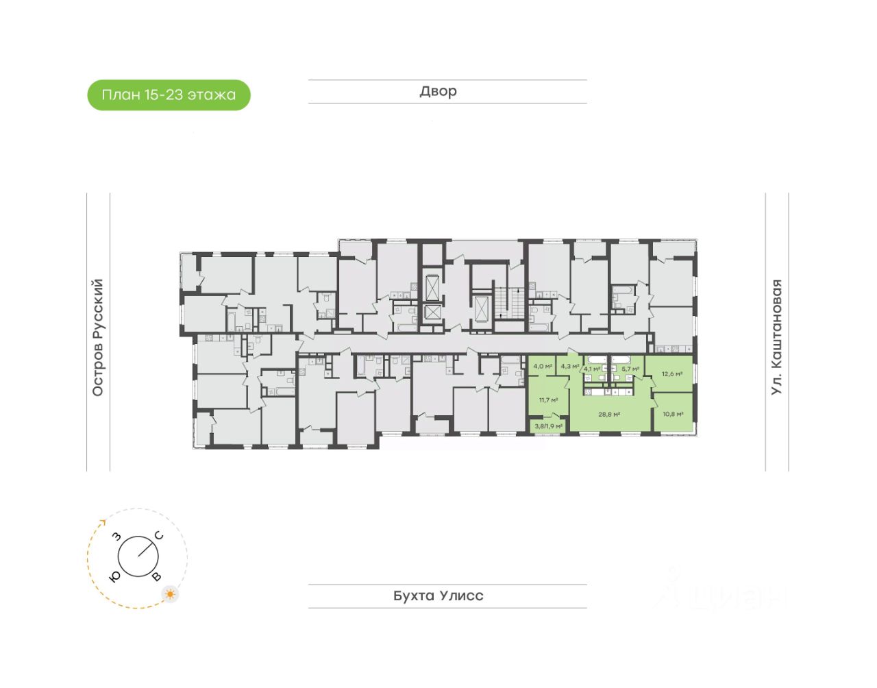Кухня-столовая 28,8 кв.м станет настоящим сердцем квартиры, где можно готовить семейные завтраки и ужины, а также проводить время в кругу близких людей