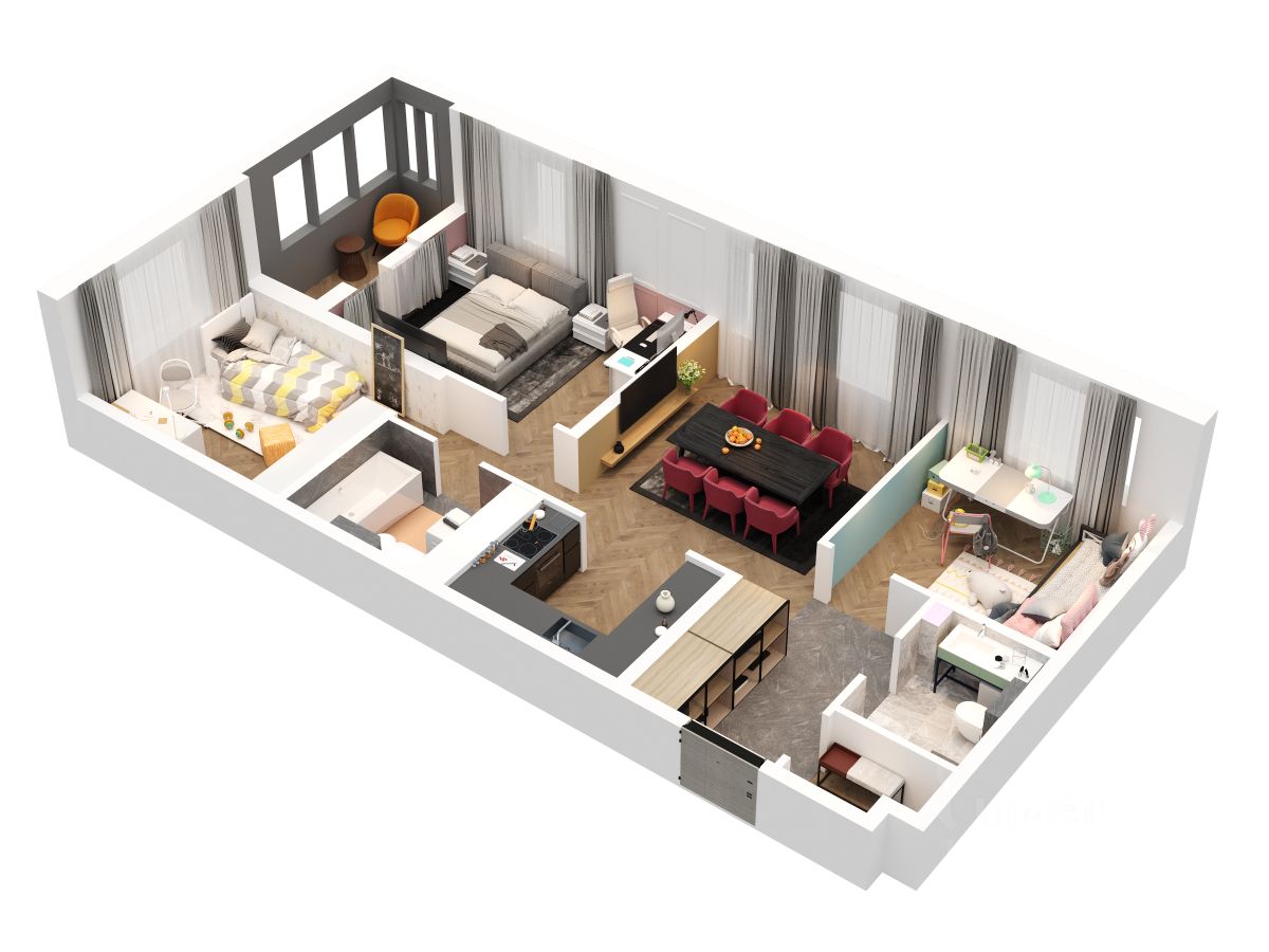 Две детские комнаты 12,6 кв.м и 10,8 кв.м обеспечат комфорт для развития и игр вашим детям
