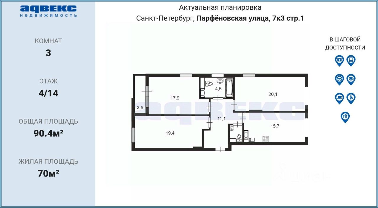 продам 3-к, Парфеновская, 7 корп. 334 099 000 ₽