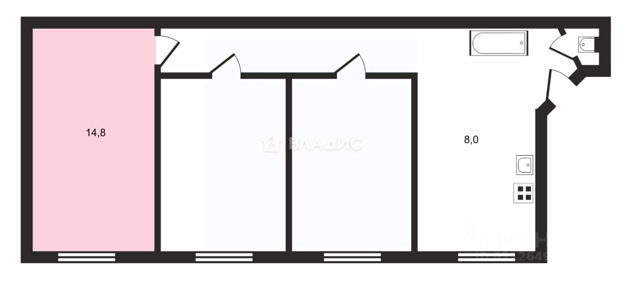 Санузел раздельный, ванная проходная на кухне(есть техническая возможность изолировать).