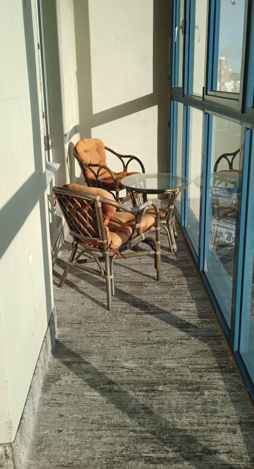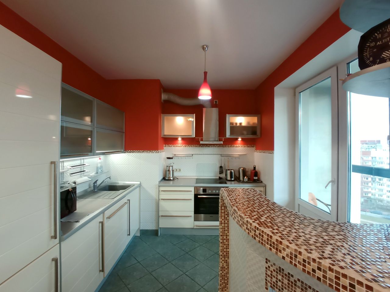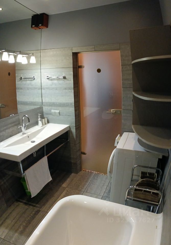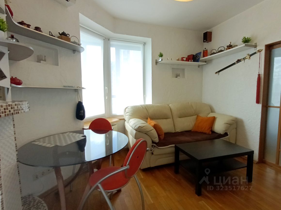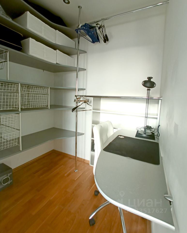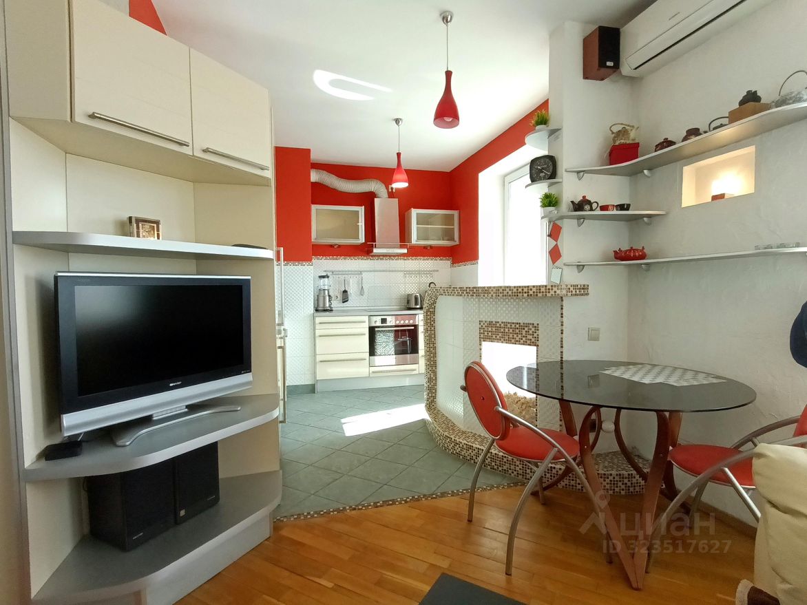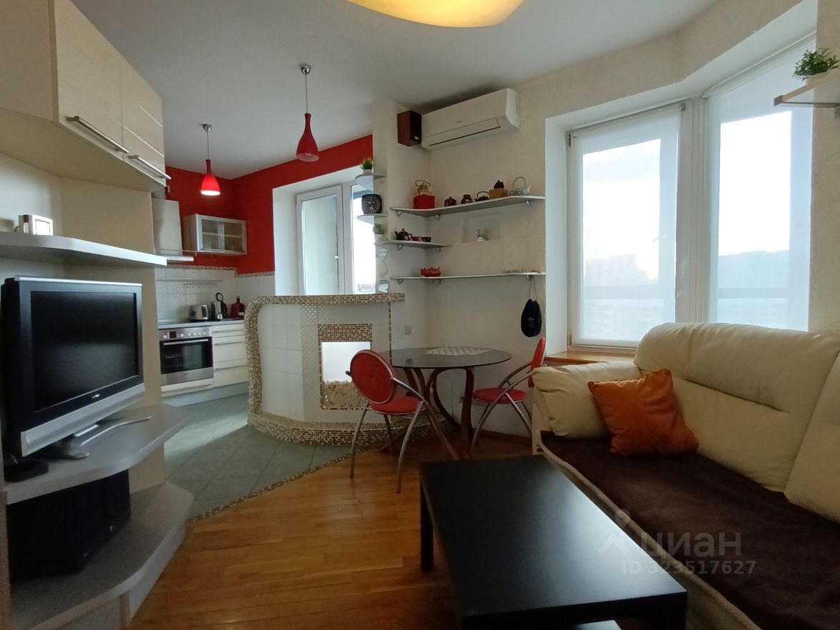 Светлая спальня с гардеробом и рабочим местом, кухня-гостиная, дополненная барной стойкой, и место отдыха с большим телевизором. Два выхода на обустроенную лоджию, длиной во всю квартиру.