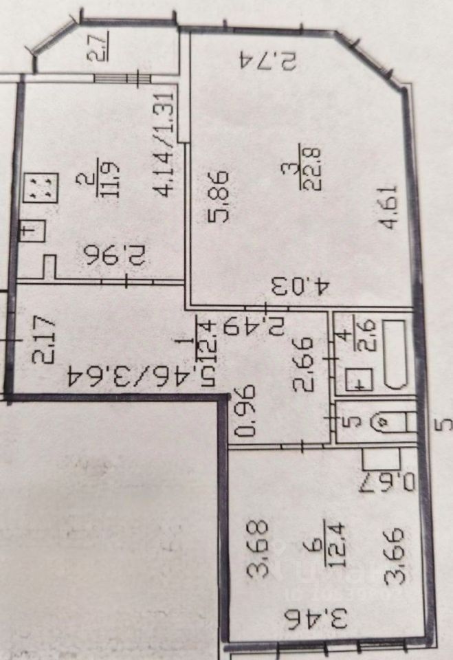 Главные преимущества: Большая и функциональная планировка — много света и пространства, Огромная комната 22,8 м² с эркерным окном — идеально подойдёт под гостиную или спальню + вторая комната 12,4 м² правильной формы.