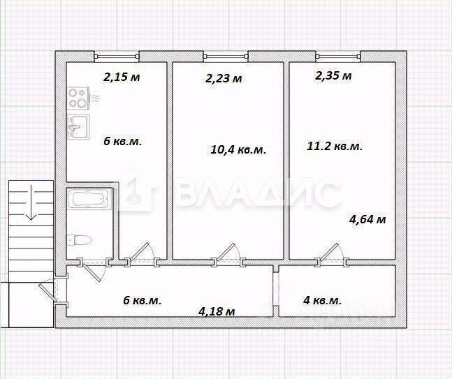 Общая площадь квартиры составляет 42 кв. м, из которых 26 кв. м — жилая площадь, а 6 кв. м — кухня. Жилая площадь разделена на две комнаты, что идеально подходит для семей с детьми. Совмещённый санузел обеспечит удобство для всех членов семьи.