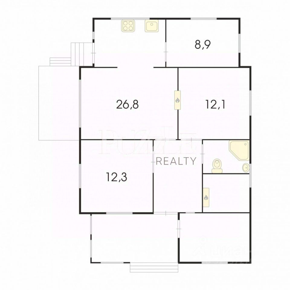 ПЛАНИРОВКА ДОМА: Первый этаж 83 м2: Кухня-гостиная 26,8 м2 с отдельным входом Санузел 8м Две спальни по 12 м2 Спальня 8 м2 Котельная Терраса