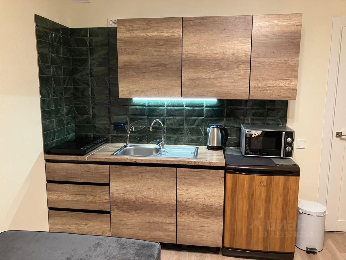 Сдается на длительный срок студия в новом жилом комплексе: - Общая площадь 18 кв.метров. - Светлая комната, окна на юго-восток. - Просторное спальное место. - Есть вся необходимая бытовая техника (холодильник, стиральная машина, микроволновая печь, варочная поверхность). - Санузл совмещенный, душевая кабина. - Прихожая со встроенной системой хранения. - Застекленная лоджия.