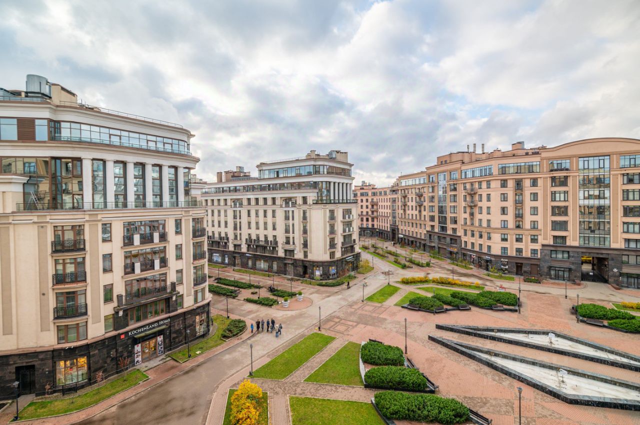 Современный, статусный ЖК. Красивые здания, выполненные в одном конструктивном решении, просторные светлые дворы. Облицовка домов выполнена из плит искусственного камня, что ассоциируется с Петербургским стилем. Город в центре города.