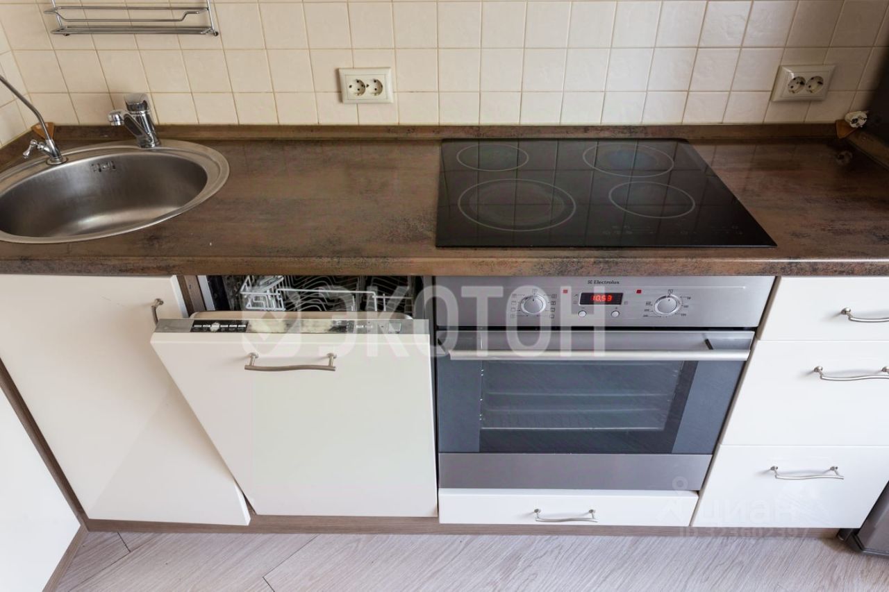 Кухня оборудована всей необходимой мебелью и техникой, включая посудомоечную машину.