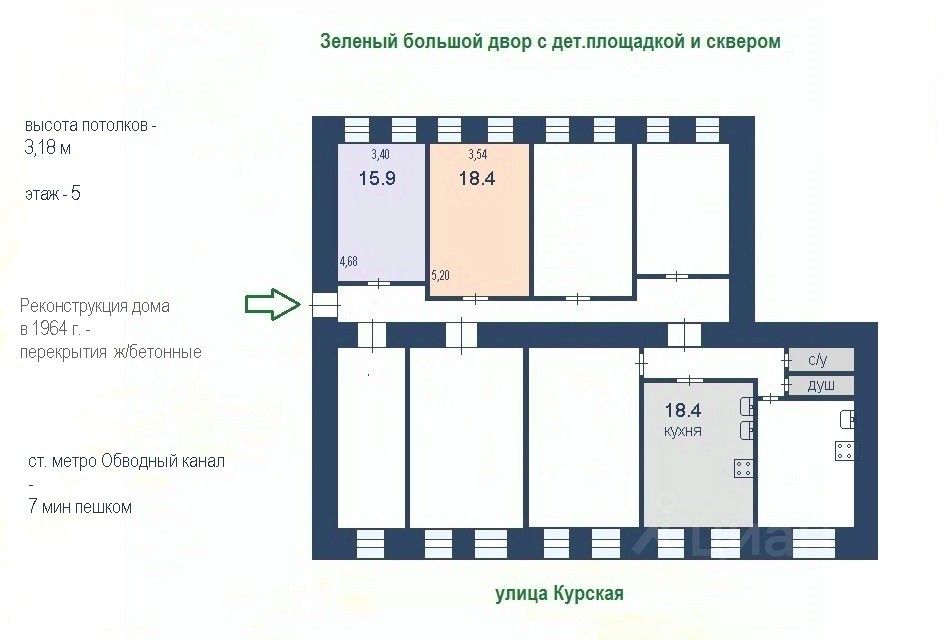 Арт. 89231078. Две отдельные комнаты рядом с МЕТРО и Невским проспектом. Дом с кап.ремонтом, ж/б перекрытия.