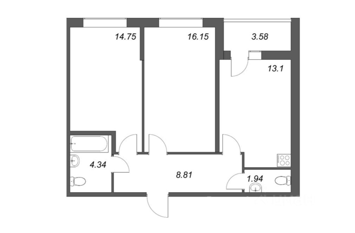 Продается уютная 2х комнатная квартира в новом доме на улице Чирикова, 5, Санкт-Петербург. Общая площадь квартиры составляет 60.9 кв. м, жилая площадь — 30.9 кв. м, площадь кухни — 13.1 кв. м. Квартира расположена на 1 этаже 13-этажного монолитно-кирпичного дома, построенного в 2023 году. Высота потолков — 2.75 метра, окна выходят на улицу, есть совмещенный санузел и лоджия.