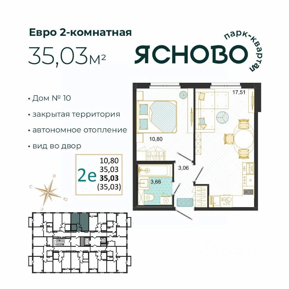 10-й дом продолжает развитие парк-квартала Ясново — современного, гармоничного пространства для жизни. Архитектура дома лаконична и выразительна, выдержана в общем стиле квартала и поддерживает его единый ритм и масштаб. На первом этаже расположатся магазины, уютные кафе и полезные сервисы — всё, что нужно рядом с домом. Закрытый двор без машин — безопасное и зелёное пространство для прогулок, встреч и отдыха.