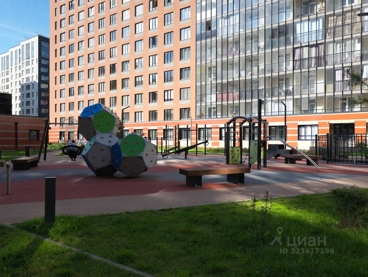 Квартира располагается на 5 этаже, из окна виден сквер. Двор Комплекса закрыт от машин выполнено ландшафтное озеленение с высадкой хвойных и лиственных деревьев. Предусмотрены игровые и спортивные площадки со столами для тенниса.