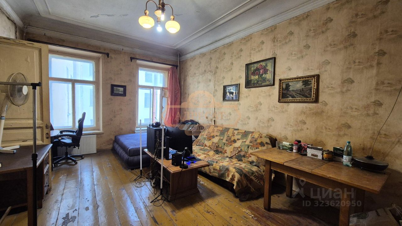 О квартире: Высота потолков 3.2 метра. Хорошая планировка - 4 изолированные комнаты, в одной из которых (25.6 кв.м) два окна, а также настоящая старинная печь. Все окна выходят в тихий небольшой двор, поэтому Вас не беспокоит шум с улиц и пыль. Кухня почти 16 кв. м. с газовой плитой, на окне стеклопакет, батарея поменяна. Ванная сейчас установлена на кухне, но в будущем возможно сделать перепланировку и спроектировать её в изолированном помещении, поскольку стены внутри квартиры не несущие. Туалет раздельный. Квартира требует основательного ремонта, поэтому подойдёт тем, кто хочет воплотить свои мечты и сделать ремонт под себя. При этом жить в самом центре исторического Петербурга, на острове. В двух комнатах ( 13 и 13 кв.м.) сделан ремонт, установлены стеклопакеты, заменены батареи, на полу ламинат и линолеум, в одной из комнат есть кондиционер. Самая большая и самая маленькая комната: пол - доска, рамы старые, батареи не меняли. В самой маленькой комнате 9 кв.м. можно сделать гардеробную с окном. Обратите внимание - в коридоре есть маленькое окно и батарея.