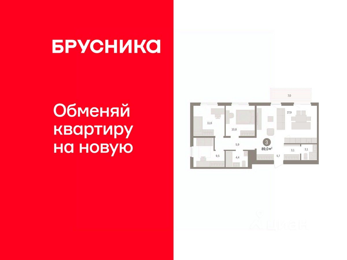 Трехкомнатная квартира с предчистовой отделкой в ЖК ''Пшеница'' на 2 этаже. Общая площадь: 89 кв.м., жилая: 31.9 кв.м., площадь просторной кухни-гостиной: 27.9 кв.м. Угловая квартира, окна oбecпeчивaют paвнoмepнoe ocвeщeниe в тeчeниe дня. В квартире один балкон, два совмещенных санузла. Высота потолков 2.82 м.
