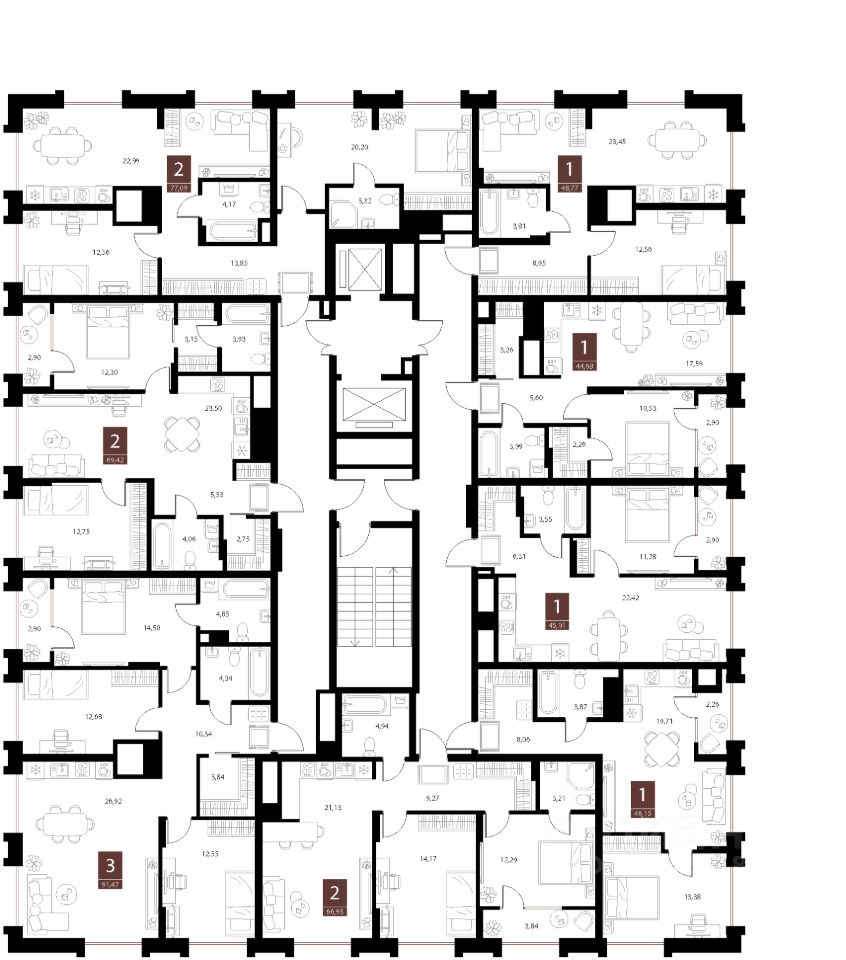 Общая площадь69,42 м2