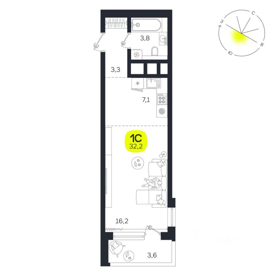 Общая площадь32,2 м2