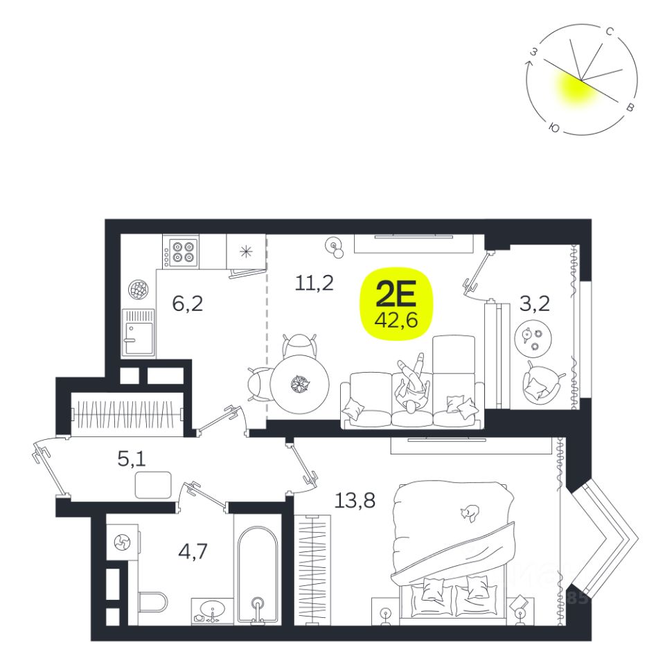 Общая площадь42,6 м2