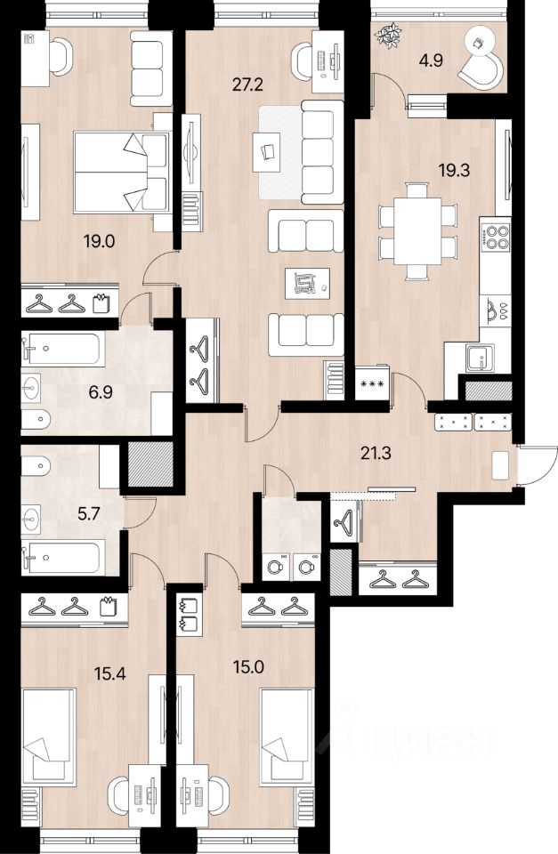 Большая семейная квартира в ЖК бизнес-класса Гавань Капитанов корпус Магелан Продаётся просторная 4-комнатная квартира в жилоом комплексе Гавань Капитанов на Васильевском острове. Площадь: 132.6м² Этаж: 5 из 18 Состояние: без отделки — создайте пространство под себя Планировка идеально подойдёт для семьи: * кухня-гостиная , * спальня в тихую сторону , * гардеробная и место под домашний кабинет. ЖК Гавань Капитанов — современный комплекс бизнес-класса с подземным паркингом, охраной, видеонаблюдением и благоустроенными дворами без машин. Вокруг — зелёные прогулочные зоны, парк 300-летия, кафе и школы. 10 минут до метро Приморская. Редкое предложение — квартира с террасой на Васильевском острове! Звоните, чтобы записаться на просмотр.