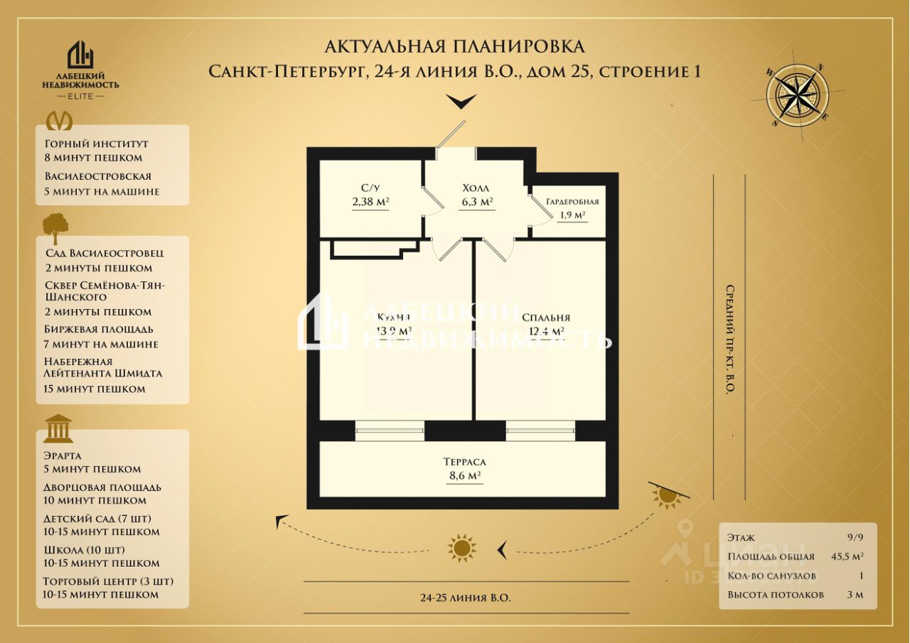 ПРО ДОМ И ИНФРАСТРУКТУРУ: -Дом Монолитный 2020 года. ЖК БИЗНЕС-КЛАССА ''Нева-Нева'' -Самый ЦЕНТР Васильевского острова -Уютный ЗАКРЫТЫЙ двор с круглосуточным видеонаблюдением и ландшафтным дизайном -Двор без машин -Обогреваемый охраняемый паркинг с возможностью спуска в него на комфортабельном лифте прямо со своего этажа -Общедомовой фильтр очистки воды и бесплатный Wi-Fi на всей территории ЖК -Просторная колясочная в парадной -В ПЕШЕЙ доступности расположены: сквер Семёнова-Тян-Шанского и сад Василеостровец (2 минуты ХОДЬБЫ) для прогулок и отдыха, музей Эрарта (5 минут ХОДЬБЫ), Горный университет (2 минуты ХОДЬБЫ). Также всего за 10 минут транспортом можно добраться до Дворцовой площади, а за 7 минут транспортом до Биржевой площади -Рядом есть необходимые объекты инфраструктуры: супермаркеты (Пятерочка, ВкусВилл, Ароматный мир и другие), пункты выдачи заказов, продовольственные магазины, аптеки, салоны красоты, кафе, рестораны, пекарни, фитнес-центры и другие полезные сервисы для комфортной жизни -Школа в 2х минутах ХОДЬБЫ! А прямо за домом строится ЭЛИТНАЯ школа -Детский сады в 7и минутах ХОДЬБЫ