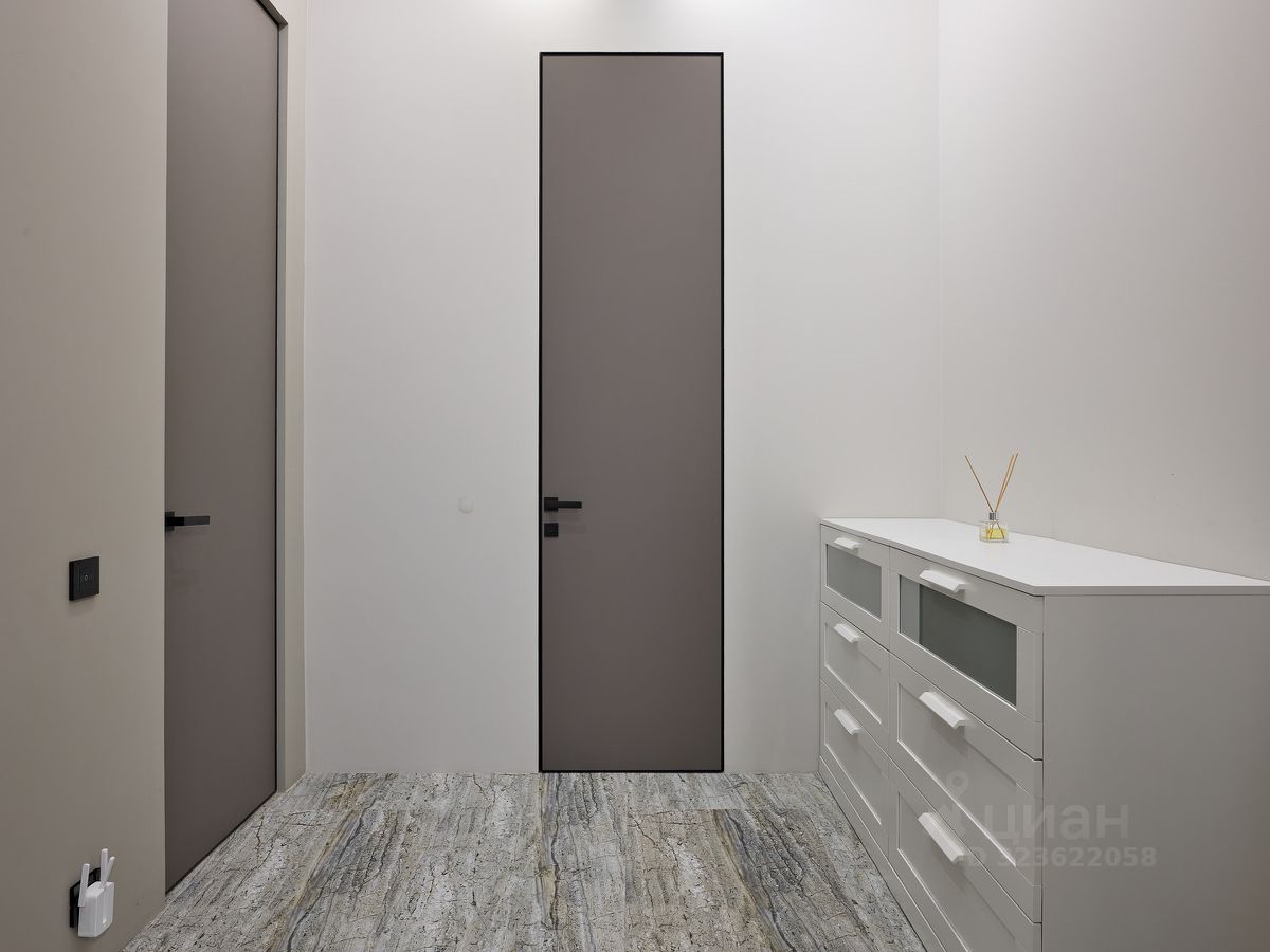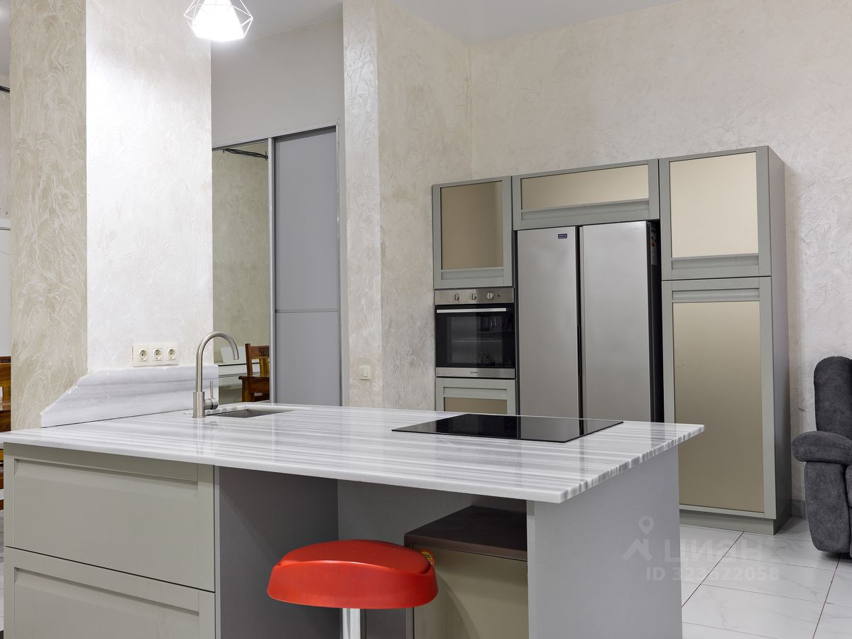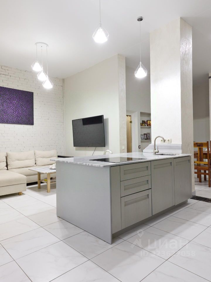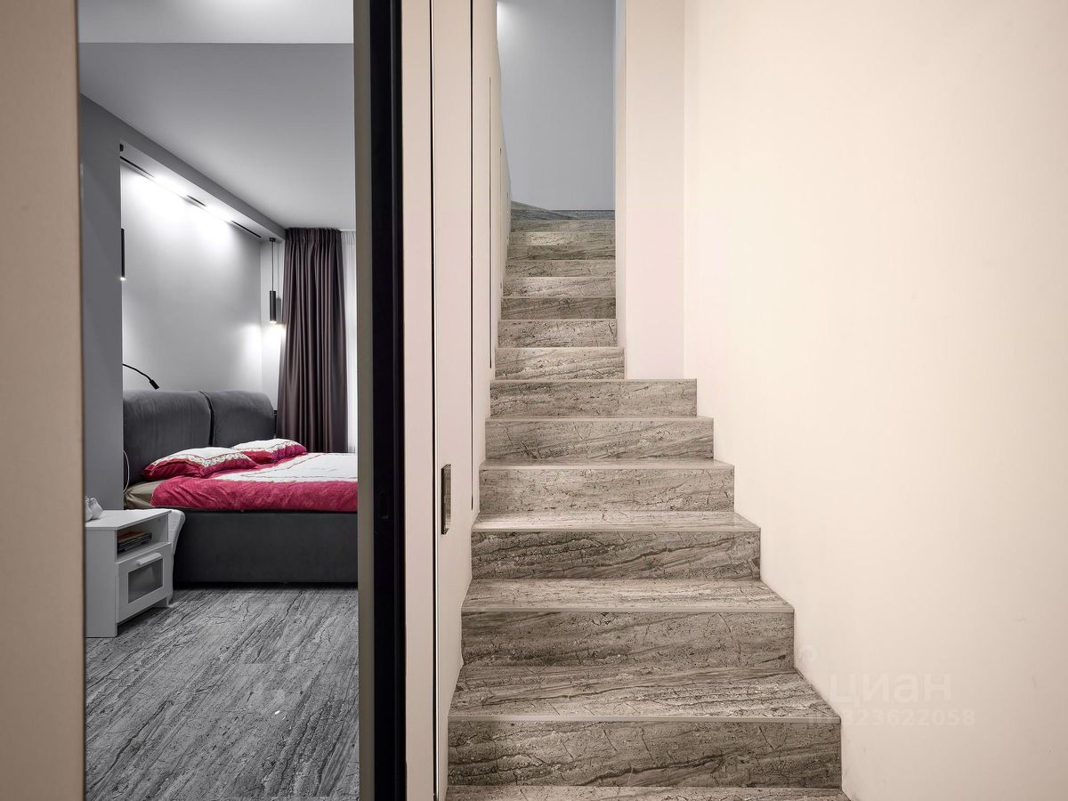 Планировка удобная и функциональная: вместительная прихожая с гардеробным шкафом, большая кухня-гостиная с островом, встроенной мебелью и техникой, три изолированные спальни, полностью оборудованы кроватями, гардеробными и мебелью (две на первом уровне, одна на втором этаже), два раздельных санузла, большое количество зон хранения и скрытых ниш. В квартире выполнен качественный ремонт с дорогими отделочными материалами и уникальными элементами декора. Высота потолков составляет 4 метра, что создает полное ощущение загородного дома.